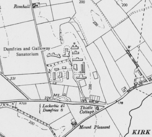 In 1921, four pavilions were erected, these were originally hostels to house ammunition workers in Gretna. They were used for treating patients with tuberculosis, mainly of the lungs but also of bones, joints and glands. The old fever wards were closed in 1949 and the new hospital became known as Lochmaben Sanatorium serving the South-West of Scotland.